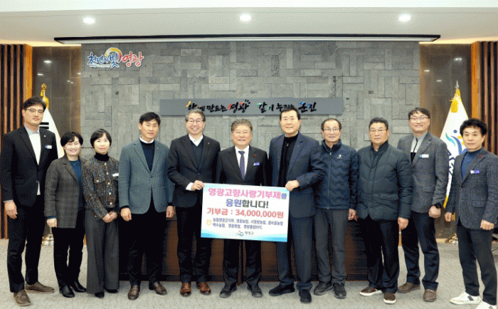 이에 영광군수 장세일은 “항상 영광군 농축산업 발전을 위해 노력하고 있는 범농협 임직원분들께 감사한 마음을 가지고 있다”며 “소중하고 따뜻한 기부에 동참해 주심에 감사하고 모금된 기부금은 공정하고 내실있게 사용할 것임을 약속드리겠다.”고 말했다.