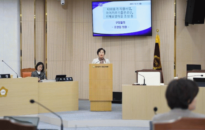 조영임 의원은 “현재 구 단위로 운영하는 다회용기지원센터를 시민들이 쉽게 접근하고 이용하도록 하기 위해서는 동별로 운영해야 한다”며 “다회용기 수거·세척 등의 사업 관련 마을형 일자리도 만들 수 있다”고 제안했다.