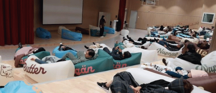 상담콘서트에 참여한 시민 60여 명은 에어쇼파에서 편안하게 낮잠을 즐기며 재충전하는 시간을 가졌다.