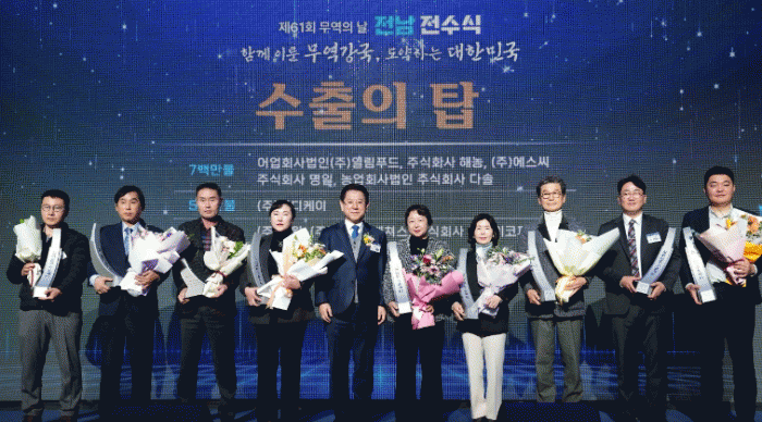 김영록 지사는 “올해 저성장, 고환율, 보호무역주의 확산으로 어려움을 겪으면서도 기업인들께서 신시장 개척과 기술혁신으로 수출 경쟁력 제고에 힘써줘 감사하다”며 “앞으로도 수출 기업이 세계 무대에서 빛나도록 전남도가 든든한 지원군이 되겠다”고 강조했다.