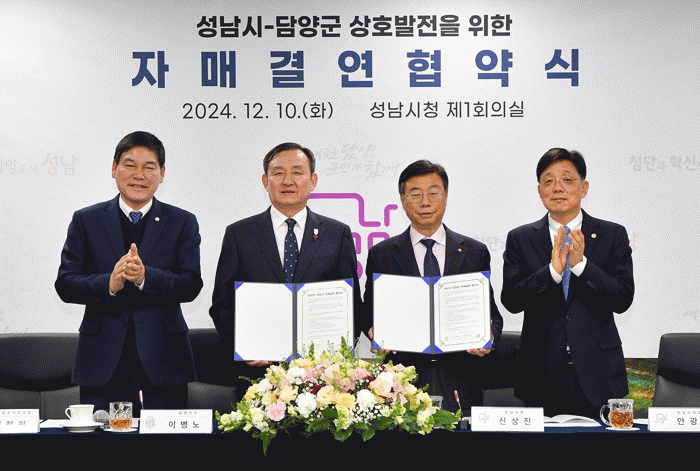 신상진 성남시장은 “스마트 혁신 도시 성남시와 관광휴양 도시 담양군의 자매결연 체결이 서로의 강점을 극대화해 상호 발전의 성과로 이어지길 바란다”라고 말했다.