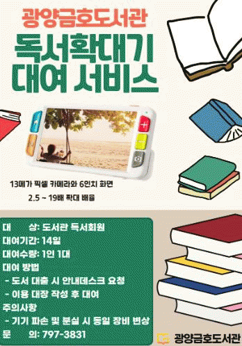 광양금호도서관은 휴대용 독서확대기 4대, 공공이용 보청기기 2대, 화면낭독 S/W 1대와 같이 3종의 독서보조기기를 지원받았다.