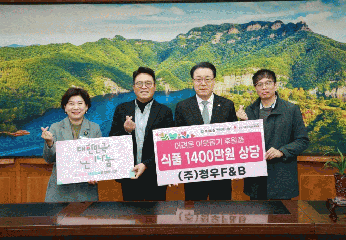 ㈜청우F·B의 따뜻하고 감사한 마음을 잊지 않고 민생 안정과 어려운 이웃을 위해 최선을 다하겠다.”고 말했다.