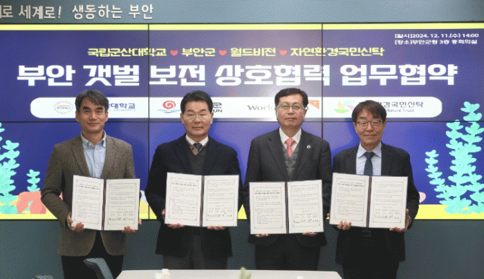 이날 협약식에는 권익현 부안군수와 최연성 군산대 부총장, 김성태 월드비전 ESG사회공헌본부장, 전재경 자연환경국민신탁 대표이사 등 10여명이 참석했다.