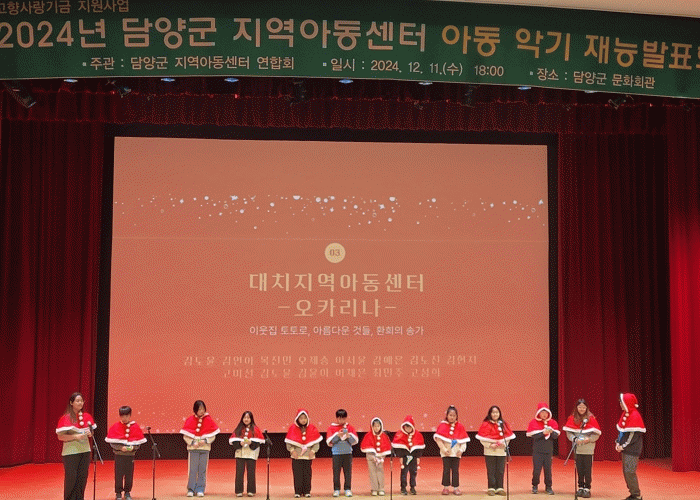 군 관계자는 “발표회를 통해 지역아동센터 아동들의 재능과 열정을 엿볼 수 있었다”라며 “앞으로도 배움을 통해 아동들의 건강한 성장에 이바지할 수 있도록 적극 지원하겠다”라고 전했다.