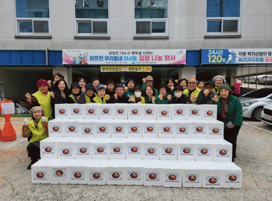 이충현 여서동장은 “매년 김장김치를 후원해주셔서 감사드린다”며 “나눔으로 행복을 더하고 이웃과 함께 더불어 사는 여서동이 되도록 노력하겠다”고 말했다.