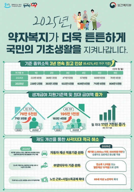 한편 수급 대상 확대 및 사각지대 해소를 위해 2025년 생계급여 제도개선을 적극 추진한다.