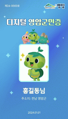먼저, 디지털 영암군민에 신청을 하면 영암군은 ‘디지털 영암군민증’을 발급한다.