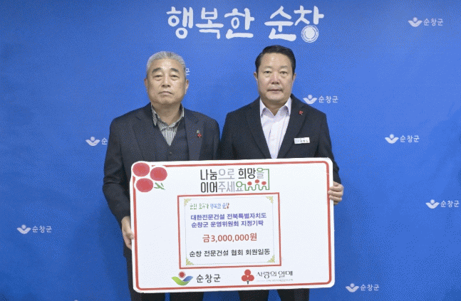 이번 성금은 순창전문건설협회 회원들이 회의를 통해 결정됐으며, 지역사회에 대한 사회적 책임을 다하고자 마련됐다.