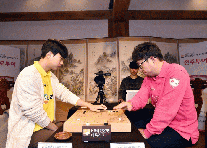 한옥마을 전주팀은 15일 전주 대사습청에서 우승 후보로 손꼽히는 울산 고려아연과 KB 바둑리그 첫 대국을 펼쳤다.