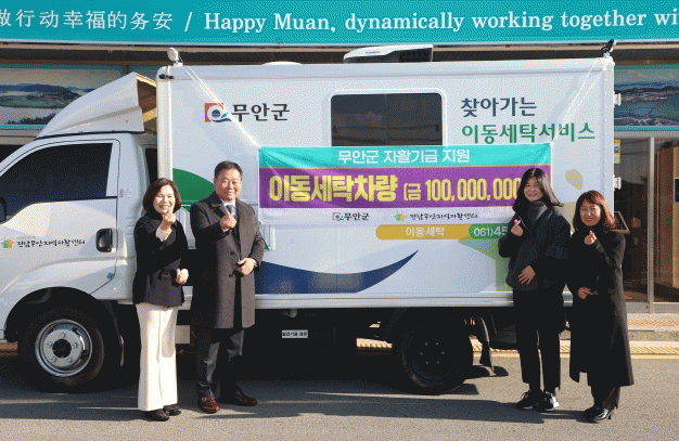 이번 전달식은 저소득층 주민의 쾌적한 일상생활을 지원하기 위한 김산 군수의 적극적인 의지로 마련됐다. 사업비는 전액 무안군자활기금으로 차량을 구입했다.