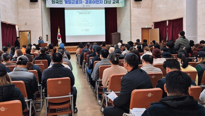이번 교육은 2025년도 결혼이민자 초청 외국인 계절근로자 도입을 대비해 사증 발급 인정서 대행 신청 등 입국 절차와 준비서류를 안내하고자 진행됐다.