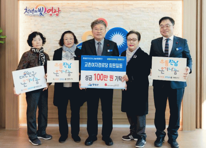 한편, 영광군 관계자는 “어려운 시기임에도 불구하고 군민을 생각하는 온정이 추운 겨울을 보내는 우리 모두에게 큰 힘이 될 것이며 기탁해 주신 성금은 도움의 손길이 필요한 곳에 소중하게 사용하겠다.”라고 전했다.