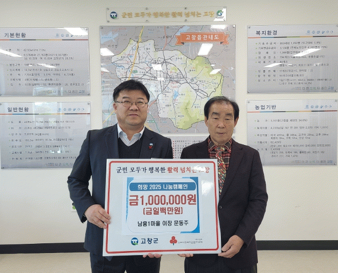 문동주 이장은 “이번 성금이 조금이라도 이웃들에게 힘이 되어, 모두가 함께 행복한 마을을 만들 수 있기를 바란다”고 밝혔다.