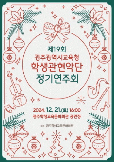광주학생교육문화회관 정은남 관장은 “연말을 맞아 이번 연주회가 감동을 선사할 것으로 기대한다”며 “관현악단 학생들의 음악적 재능을 선보이는 자리인 만큼 많은 시민들이 오셔서 응원해 주시길 바란다”고 말했다.