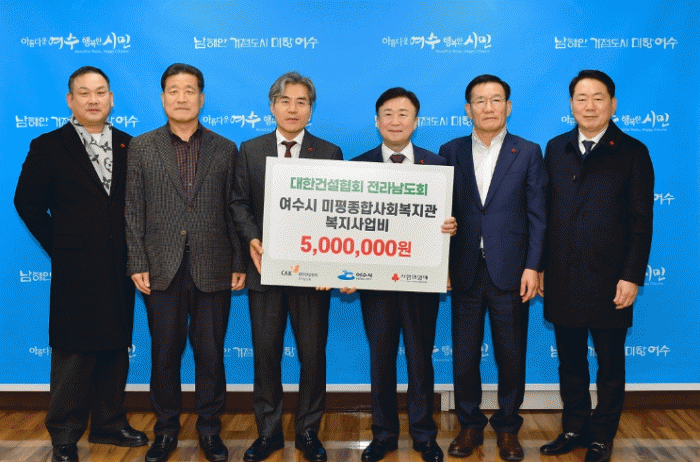 정기명 여수시장은 “지역사회를 생각하는 마음이 모여 훈훈한 온기로 가득하다”며 “지속적인 나눔으로 성금을 전달해주신 대한건설협회 전남도회와 여수시종합건설협의회에 감사드린다”고 전했다.