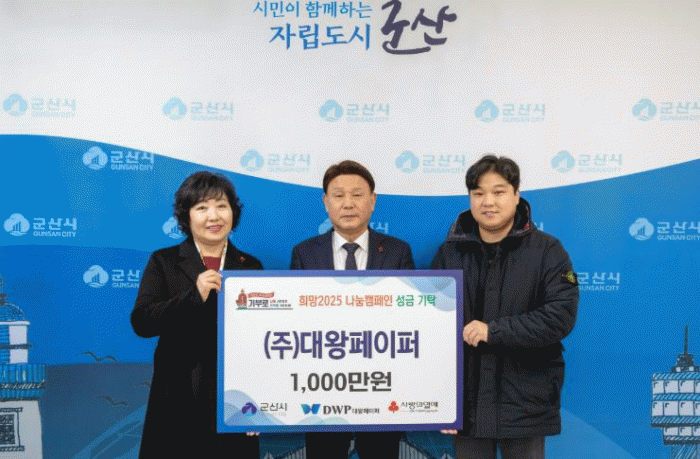 강임준 군산시장은 “우리시의 어려운 이웃을 늘 생각하며 기탁 해주시는 ㈜대왕페이퍼에 진심으로 감사드리며, 따뜻한 마음 이어받아 잘 전달될 수 있도록 최선을 다하겠다.”라고 전했다.