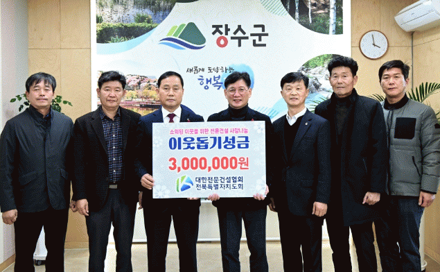 최훈식 군수는 “매년 나눔을 실천해 주시는 대한전문건설협회 전북특별자치도회에 감사드린다”며 “도움이 필요한 이웃들에게 의미있게 전달될 수 있도록 하겠다”고 전했다.