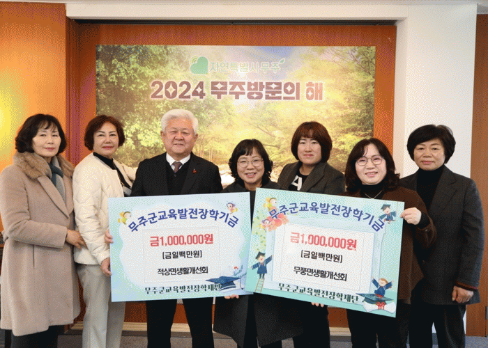 무풍면 생활개선회(회원 수 70명)에서 이날 기탁한 장학금은 2023년부터 대덕산 장터 축제 먹거리(국수 등) 판매와 경관 조성을 위한 꽃 심기, 떡국떡 나눔 활동을 통해 모아 온 기부금으로 알려졌다.