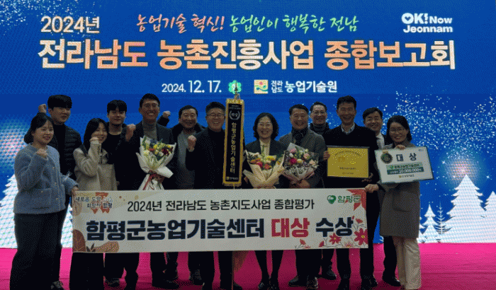 문정모 함평군 농업기술센터 소장은 “이번 수상은 직원들이 농업과 농촌의 발전을 위해 끊임없이 지역 현장을 누빈 결과”라며, “기후변화, 고령화 등 빠르게 변화하는 농촌 환경에 선제적으로 대응하며 지역 농업의 지속 가능한 성장을 도모하겠다”고 밝혔다.