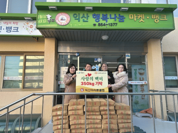 이날 익산마라톤클럽은 백미 350㎏을 기탁했고 ㈔한국들녘경영체중앙연합회 익산시연합회는 라면, 휴지, 사골곰탕 등 245만 원 상당의 물품을 전달했다.