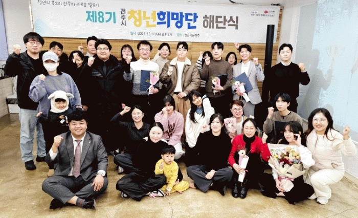 전주시는 지난 18일 청년이음전주에서 제8기 청년희망단 단원과 시 관계자 등 40명이 참석한 가운데 ‘제8기 전주시 청년희망단 해단식’을 가졌다.