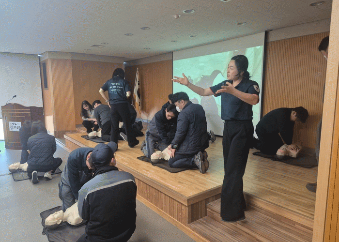 이번 교육은 심폐소생술 및 자동제세동기 사용법, 응급처치 요령 등 이론과 실습 위주의 교육으로, 심폐소생술의 중요성에 따른 응급구호 역량과 위기 상황 대처 능력을 향상하기 위해 실시됐다.