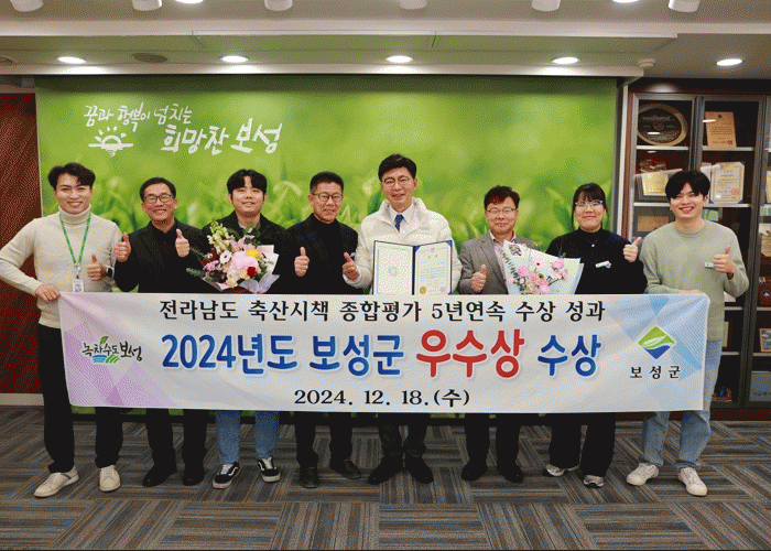 이로써 보성군은 2020년 최우수상, 2021년 대상, 2022년 우수상, 2023년 최우수상에 이어 5년 연속 수상이라는 성과와 함께 축산행정 우수성을 입증받았다.