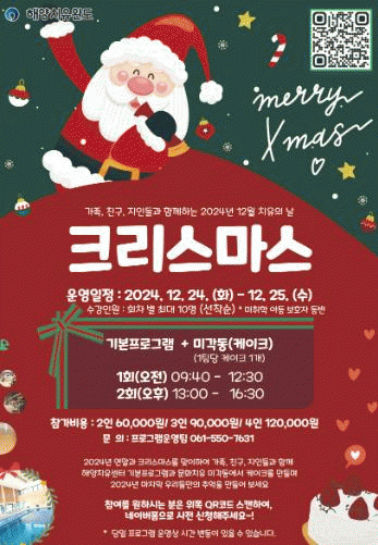 먼저 가족, 친구, 지인들과 함께하는 크리스마스 이벤트는 해양치유센터 기본 프로그램 이용 및 해양문화치유센터(미각동)에서 케이크 만들기를 준비했다.