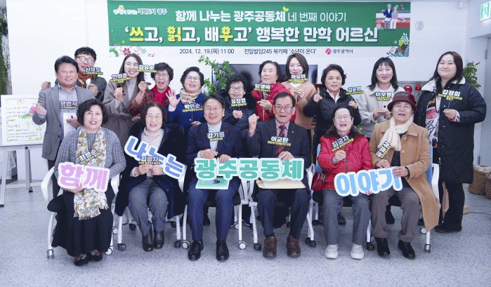 강기정 시장은 광주 성인문해교육 시화전에서 대상을 받은 윤일심 학생의 시 ‘여든 살에 꾸는 꿈’ 전문을 읽으며 참석자들과 소회를 나눴다. 강 시장은 전쟁과 산업화 등 풍파를 맞섰던 만학도들의 꿈을 새겨들었다.