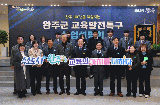 이날 설명회에는 유희태 완주군수, 윤수봉, 권요안 도의원, 교육발전특구 지역협의체, 유관기관, 교육관계자, 학부모, 학생 등 총 150여 명이 참석했다.
