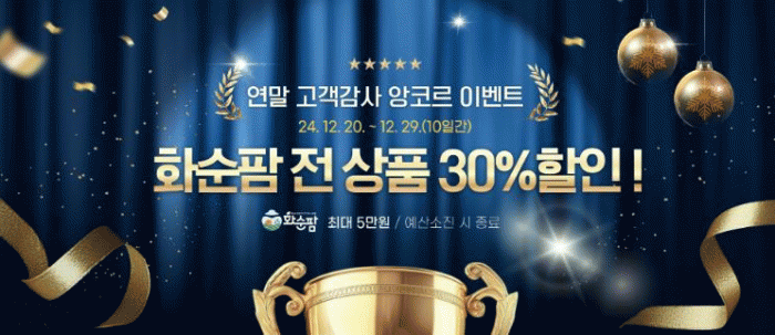구현진 농촌활력과장은 “2024년 많은 회원의 관심 덕분에 화순팜이 역대 최고 매출인 35억을 달성했다.”며, “연말을 맞아 화순팜을 이용하시는 고객들과 입점 업체들을 위해 한 번 더 큰 선물을 준비했으니, 화순팜 농특산물과 함께 마음 따뜻한 연말 보내시길 바란다.”고 말했다.
