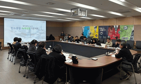 이날 보고회에는 탄소중립 녹색성장 위원회 소속 위원 17명과 용역 수행기관인 (재)광주기후에너지진흥원 관계자들이 참석, 탄소중립 실현을 위한 2030 중기 로드맵과 2045 장기 로드맵에 대해 심도 있는 논의를 진행했다.