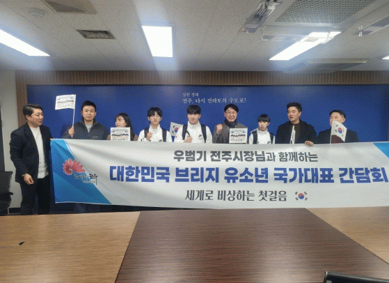 이날 간담회에는 우범기 전주시장, 전성호 전북브리지협회 회장, 권승일 유소년단장, 유소년 선수 3명이 참석해 전주지역 브리지 종목의 발전 및 육성 방안에 대해 논의했다.