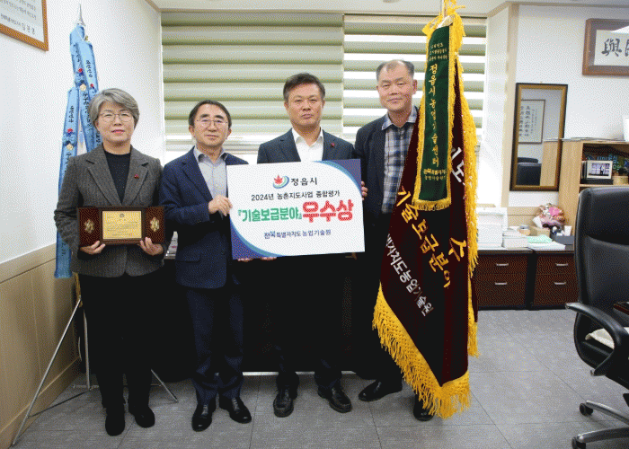 지난 18일 전북특별자치도 농업기술원이 주관한 이번 평가회에서 정읍시 농업기술센터는 식량작물, 소득기술, 작물보호 등 기술보급분야에서 뛰어난 점수를 받아 우수기관상의 영예를 안았다.