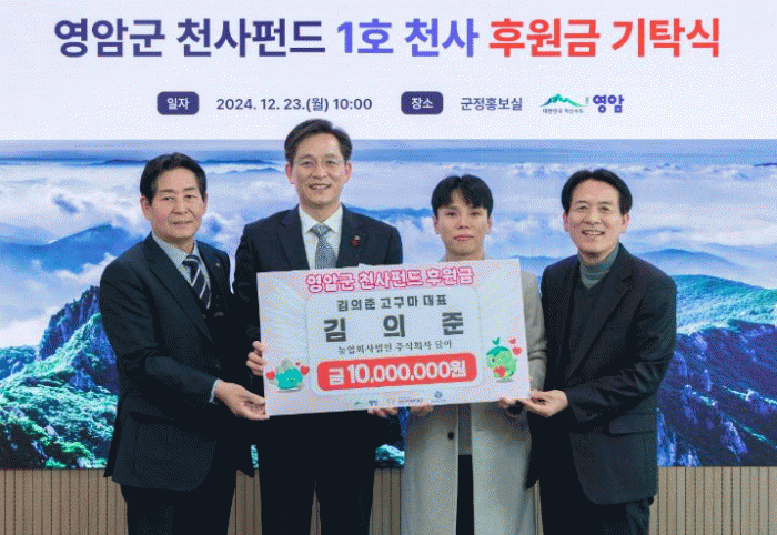 김 대표는 군청에서 천사펀드 모금을 담당하는 사회적협동조합 영암지역네트워크에 기금을 건네며 프로젝트 첫 기부자로 이름을 올렸다.
