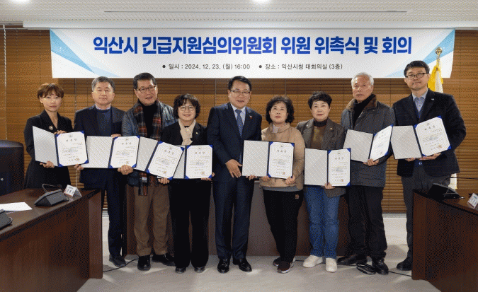 이날 회의는 안건 심의에 앞서 위원 10명에 대한 위촉식이 진행됐다. 정헌율 익산시장은 위촉장을 수여하며 긴급 지원 체계 강화에 힘써줄 것을 당부했다.