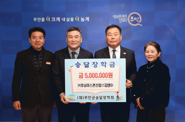 김생수 대표는 기탁식에서 “지역 인재 양성과 사회 발전에 기여하고자 꾸준히 장학금을 기탁했다”며, “지속적인 나눔 실천을 통해 지역의 희망인 학생들이 무안군을 빛내주는 인재로 성장하는 데 밑거름이 되도록 기탁금이 소중히 사용되기를 바란다”고 전했다.