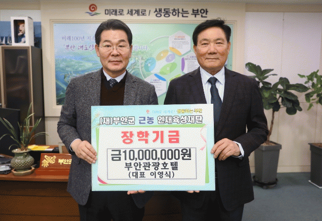 부안군근농인재육성재단 권익현 이사장은“오랜 기간 꾸준한 고액의 장학금 기부에 감사드린다”며“끊임없는 관심과 응원에 감사드리고 지역인재 육성을 위한 장학사업에 최선을 다 하겠다”고 말했다.