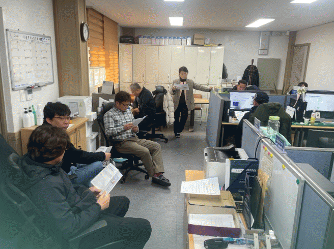 이번 교육은 자원순환센터, 보건진료소, 정수처리장 등 현장을 비우기 어려운 공직자들을 찾아가는 방식으로 진행했고, 1명이 근무하는 사무실에도 맞춤형으로 강의가 실시됐다.