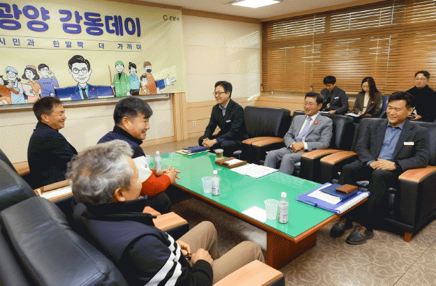 정인화 광양시장은 ▲다압취수장 관련 죽천마을 규제 해제 건의 ▲토석채취장 허가 관련 피해 대책 마련 ▲주택 옆 옹벽·주차장 조성으로 인한 피해 호소 ▲관내 유기질비료업체의 사업·수출 지원 및 관급자재 구매 요청 등 건의 사항에 대해 의견을 나누고 시민, 관계 부서장 등과 함께 해결책을 고민했다.
