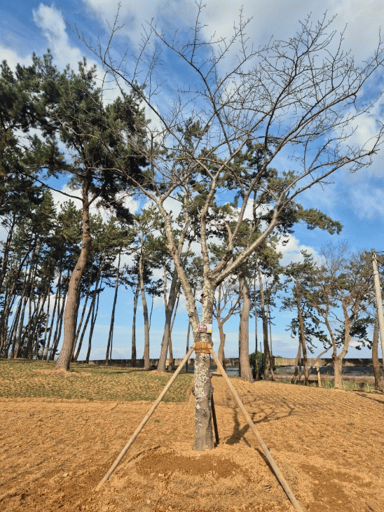 해남읍~대흥사간 지방도 806호선 4차선 확포장 공사가 추진되고 있는 가운데 해남군은 도로가의 벚나무 18주를 시험 이식했다.