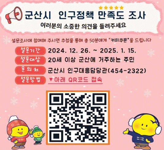 참여 방법은 군산시청 누리집 또는 블로그 등 사회관계망서비스를 통해 QR 부호(코드)에 접속하면 된다.