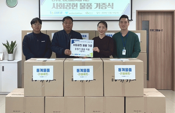 ㈜삼진정공 전주공장은 올해 7월 사회공헌 협약 이후 선풍기를 기증했고, 겨울철을 맞아 이불을 기탁했다.