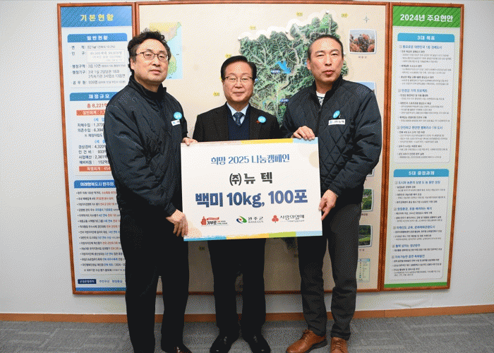 유희태 완주군수는 “따뜻한 손길을 보내주시는 (주)뉴텍에 깊은 감사의 뜻을 전한다”며 “소중한 기부품이 꼭 필요한 분들께 잘 전달될 수 있도록 하겠다”고 말했다.
