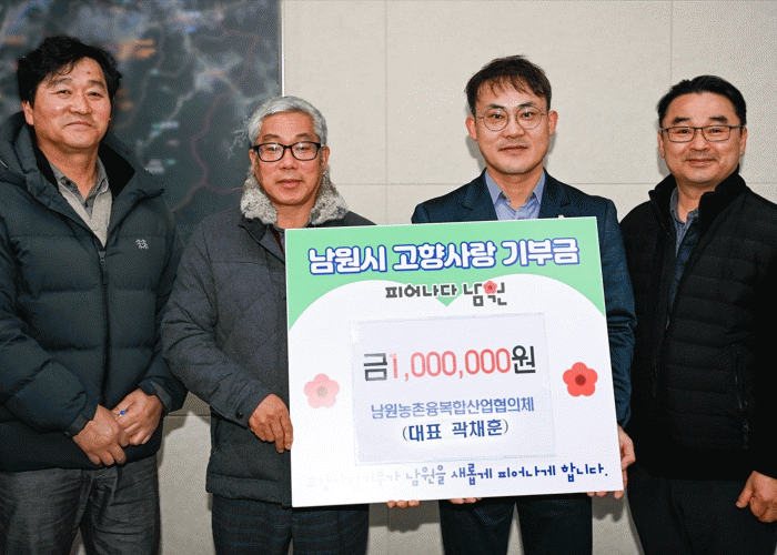곽채훈 대표는 “우리의 고향 남원을 위해 연말을 맞아 뜻깊은 기부를 할 수 있게 되어 기쁘다”라며, “지역발전을 위해 저희 남원농촌융복합산업협의체가 한마음 한뜻으로 모은 기부금을 좋은 곳에 사용해주시기 바란다”고 전했다.