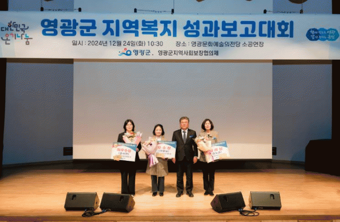 한편 지역복지 활성화에 기여한 공로에 윤성명, 김미화, 김순님, 오순남 님의 표창과 지역복지 우수사례 공모전 우수 읍면에 군서면(최우수상), 영광읍(우수상), 홍농읍(장려상)이 수상하여 우수사례 발표를 통해 다양한 복지활동의 성과를 공유하고, 지역의 위기가정 발굴 및 민간협력을 통해 지역복지 활동 방안을 모색하는 뜻깊은 시간을 가졌다.