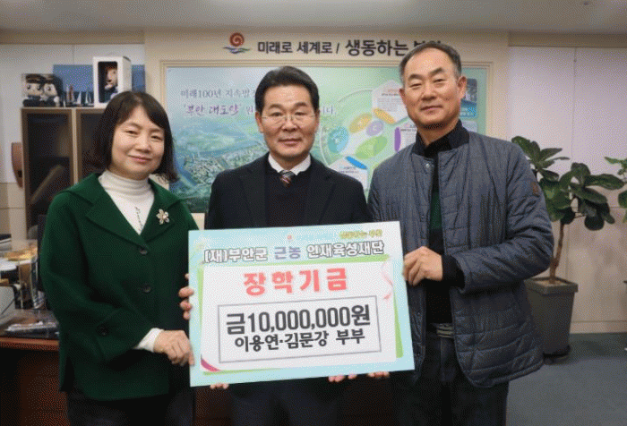 이용연·김문강 부부는 “경제적 어려움 없이 학업에 전념할수 있는 부안군 대학생 반값등록금 등 장학사업이 있어 군민으로써 매우 흐뭇하게 생각된다”고 전하며 “앞으로도 부안군 장학사업이 더욱 발전할 수 있도록 군민의 한 사람으로써 꼭 동참하겠다”고 기부의 뜻을 전했다.