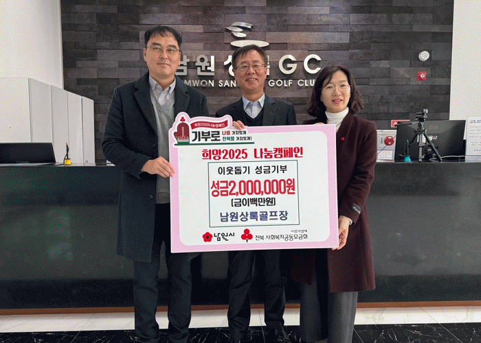 이정목 남원상록골프장 대표는 “지역사회의 일원으로써 어려운 이웃과 함께 나누는 것이 우리의 책임이라 생각한다”라며 “앞으로도 지역 주민과의 상생을 위해 다양한 나눔 활동을 이어가겠다”라고 말했다.