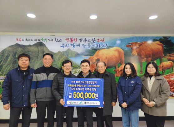 선도산림경영단지 특화임산물 재배단지 산주들이 수익금의 일부를 지역복지사업 기부금으로 전달했다.